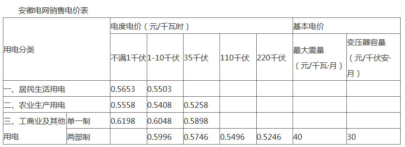 4、安徽省两部制1-10千伏、35千伏、110千伏、220千伏目录电价每千瓦时分别降低3.46分、4.46分、5.46分、6.96分。