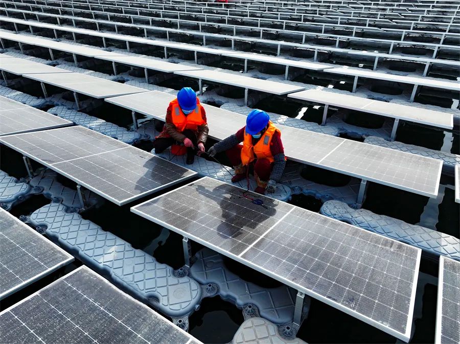 漂浮式光伏电站,不局限于地形等因素限制,在节省土地资源的前提下合理利用了厂区自用水库资源。通过覆盖水面抑制了水中藻类繁殖,改善水质降低了水库处理水质的成本,光伏电站建在水中相比屋顶和陆地光伏灰尘减少,可降低对光伏组件的污染便于电站运营维护。