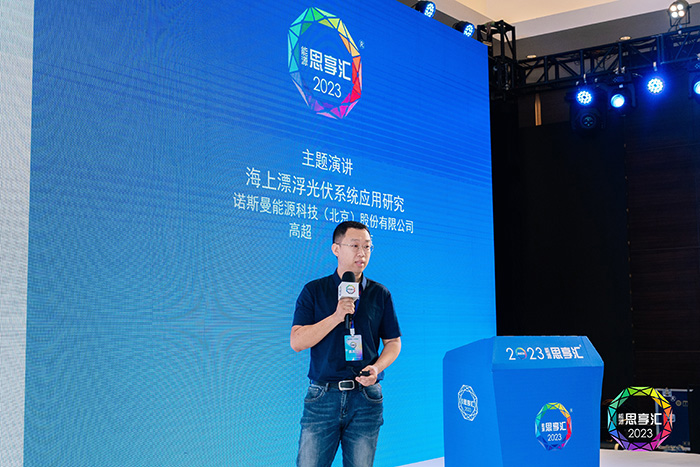 次日,诺斯曼能源技术总监高超在会上进行了“海上漂浮光伏系统应用研究”的主题演讲,介绍了诺斯曼【坚舟】®浮体系统的亮点与优势,并与其他嘉宾分享了诺斯曼对于近海与中远海域的不同技术路线与综合解决方案。